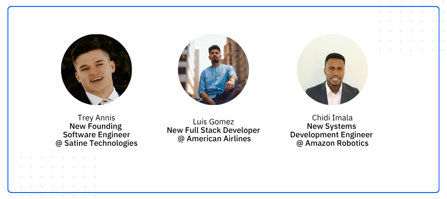 Trey Annis → Satine Technologies“My network was everything. I stayed in touch with a former colleague who later recruited me to his startup as employee #1. Build and nurture your professional relationships — you never know which one will open a door. Don’t underestimate your soft skills either; communication and collaboration are more important than ever in the age of AI. And remember: sustainable progress beats burnout every time.”